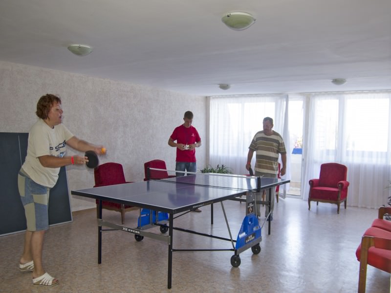 Предлагается в прокат с ракетками и шариками за дополнительную плату и расположен в корпусе отеля Морской уголок.